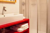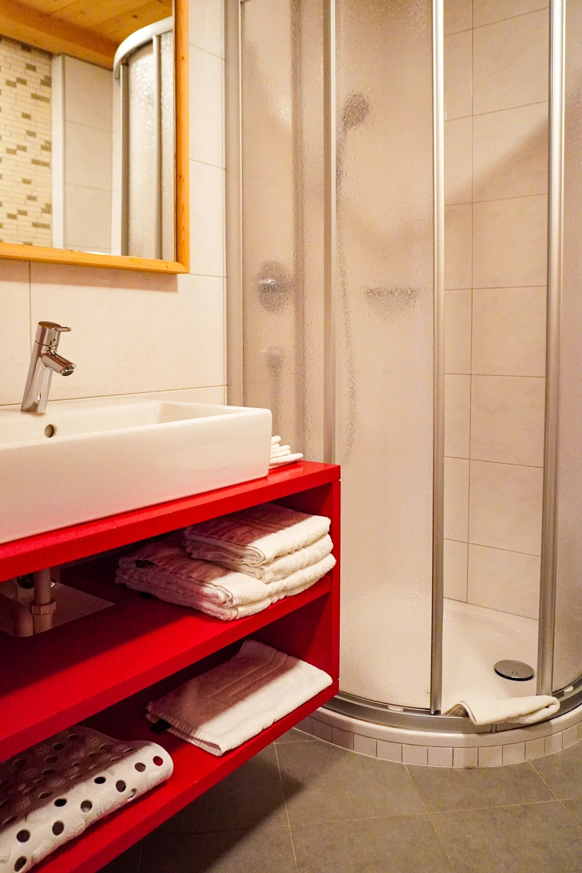 - 1 Bad ausgestattet mit Dusche, WC, Waschbereich, Fußboden-Heizung und Föhn